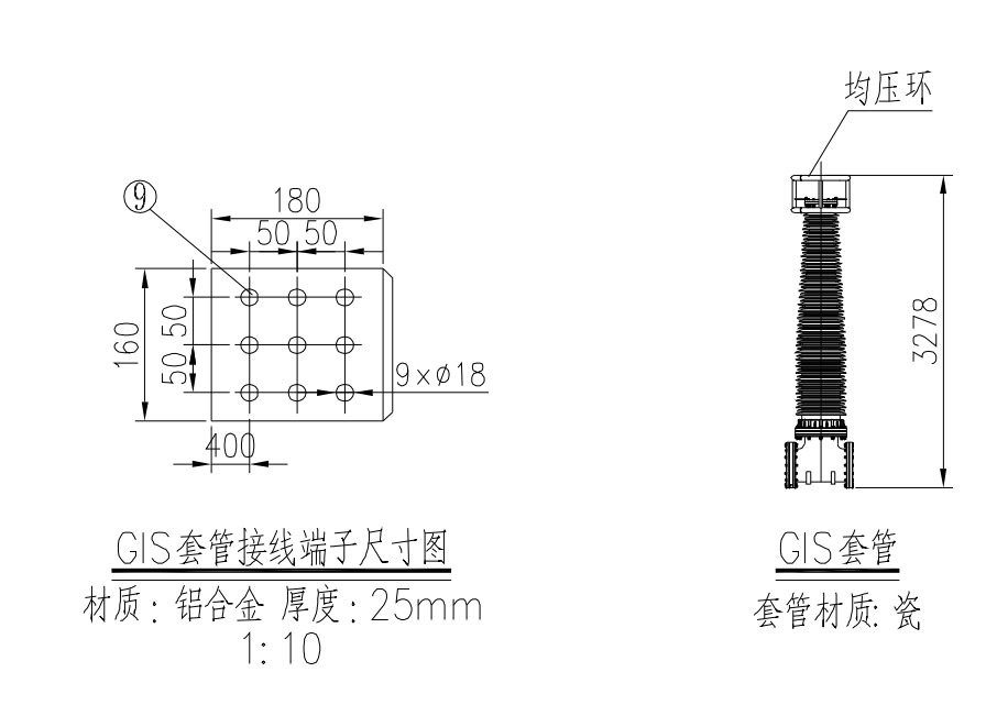 以下圖為例,施工現(xiàn)場進(jìn)行GIS套管一次設(shè)備連線安裝,套管接線板厚度δ=25mm,設(shè)計采用的金具型號為SSY-400A/200(180*160)。根據(jù)設(shè)計圖紙上廠家提資一次接線板厚度(圖二)和金具手冊上金具接線板厚度(圖三),核算GIS套管連線端子所需熱鍍鋅螺栓總長度。