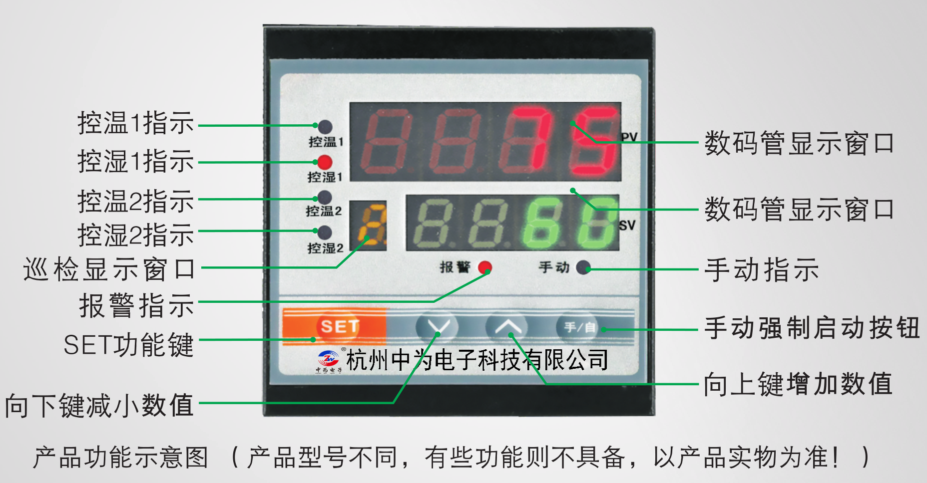 3.除濕型:當(dāng)測量濕度值大于設(shè)置濕度時,啟動除濕負(fù)載,當(dāng)測量濕度小于